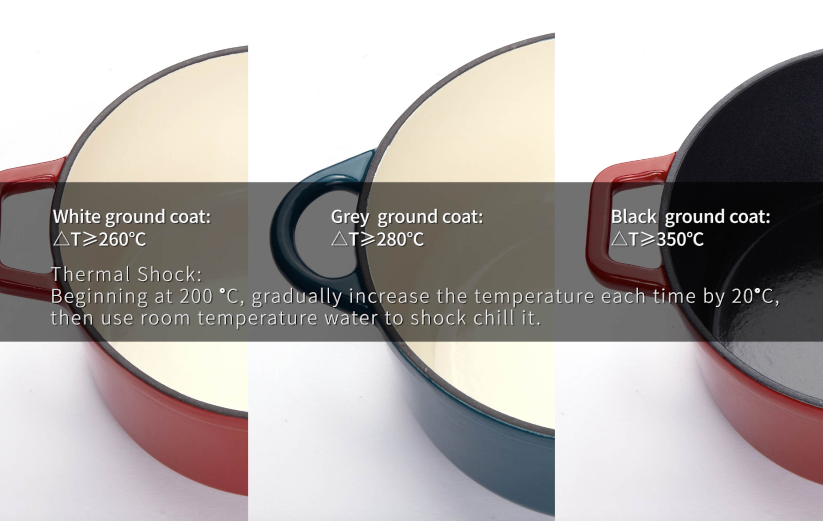 A 225g steel ball is dropped from a height of 1 meter onto our enamel pot glaze, requiring that it does not crack.