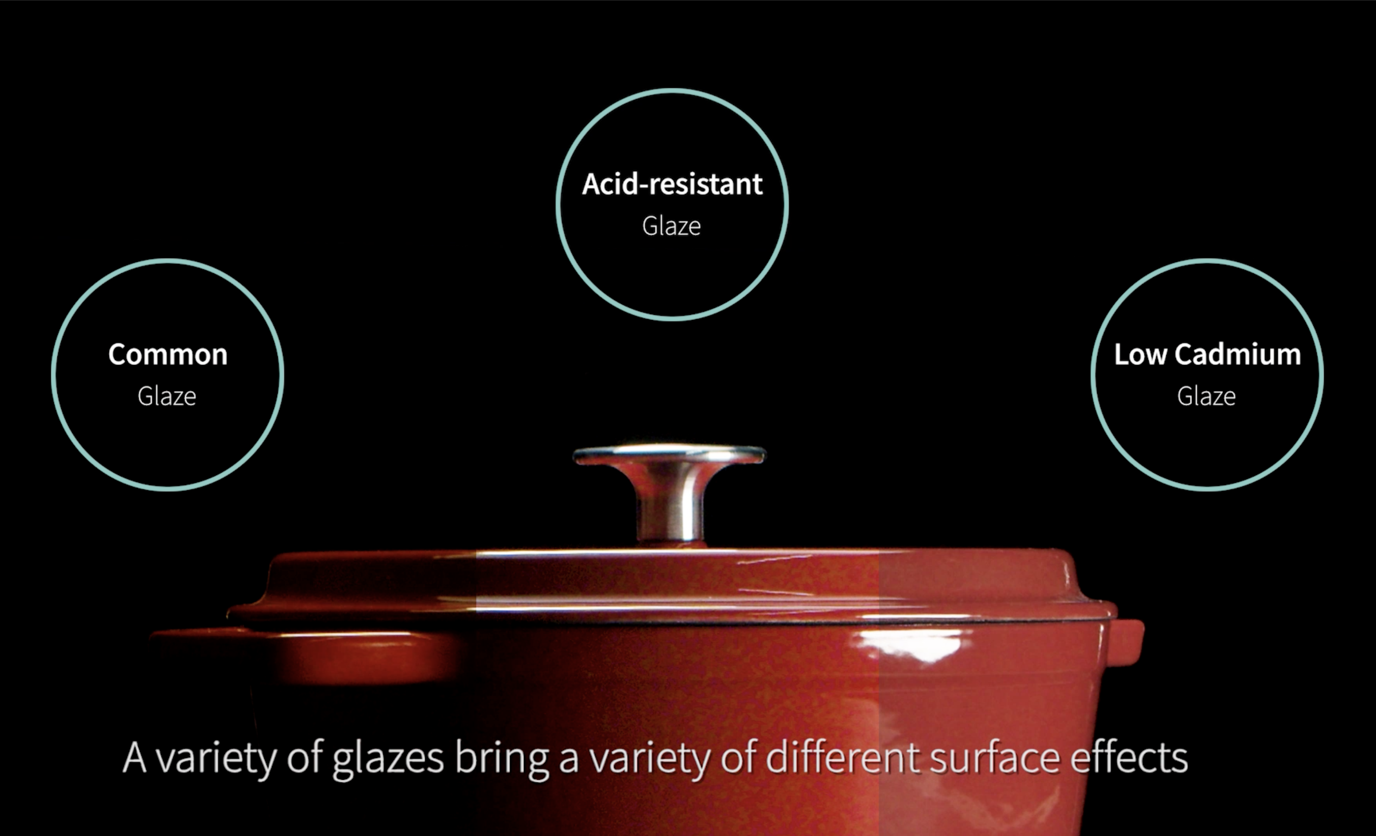 The glaze is the enamel sprayed on the surface of the ground coat, Different colors and glass can be adjusted according to different needs, giving the products a smooth, beautiful surface and a series of excellent physical properties.